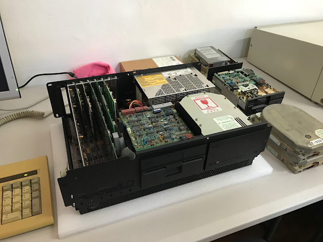 Here you can see the boards he put together with the interface ports for the various cards he created for the computer functions: