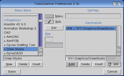 Another great feature is that when you select Add to the commands section to add a command, a window opens into which you can drag and drop any workbench icon for any program and it's path will be automatically added to your toolsdaemon menu list.