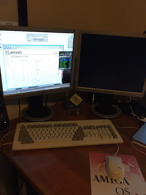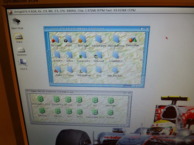 This system runs AmigaOS 3.9 BoingBag 2 with AmigaSYS4 AGA.