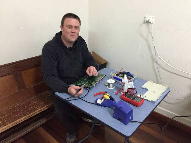 Here is Aron ready to start work on my A600 board at the Adelaide Retro Computing meeting on friday night.