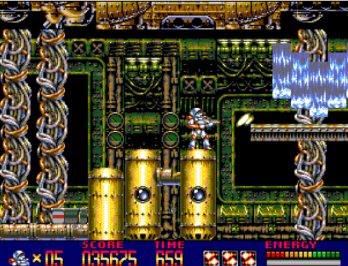 Graphics The clean, polished visuals of the first two games have been replaced with a darker, muddier look. It’s a bold move; rather than serving up the same visual style a third time, the designers have opted for a complete re-design of the world of Turrican. Unfortunately, it doesn’t quite work and looks like