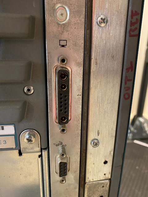 It also has a external 68 pin SCSI port connector, network port, a port I am not sure what it is for, 2 PS/2 ports for keyboard/mouse and two serial ports at the bottom.