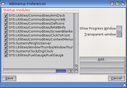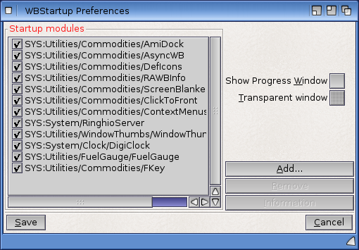 Next, browse to SYS:utilities/Commodities/ folder and select FKey which should then add it to the WBStartup window as below: