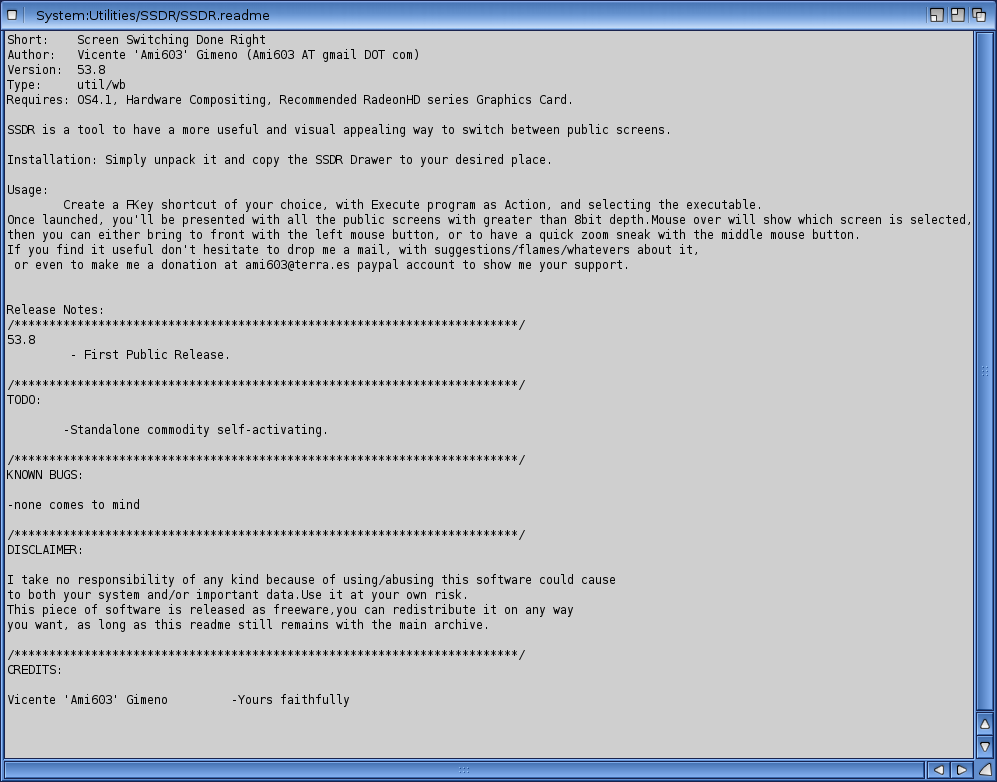 Having to double click on the SSDR icon on the workbench in order to switch screens is somewhat annoying though since Amiga-M is needed to get back to the workbench screen to run it (somewhat defeats the point of it).