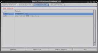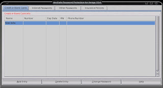 Some years ago I owned a Palm Pilot. One of the most useful programs I had on my Palm Pilot was called BeSafe. BeSafe had a simple user interface that allowed you to enter all your passwords and credit card information in one simply database, and used a complicated rijndael encoding algorithm to encode the data so that only your specific password could decode it.