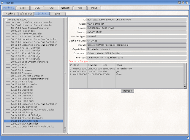 Next we can take a look at the X1000 PCI bus and BIOS, the newer version of Ranger on OS4Depot removes some of the unidentified hardware messages shown below with the actual hardware (click to expand):