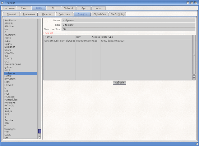Through Ranger I can also view all current assigns running under AmigaOS4. I think this is useful to see where the assigns are currently pointing to on the hard disk: