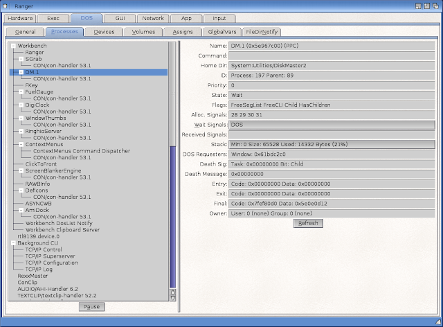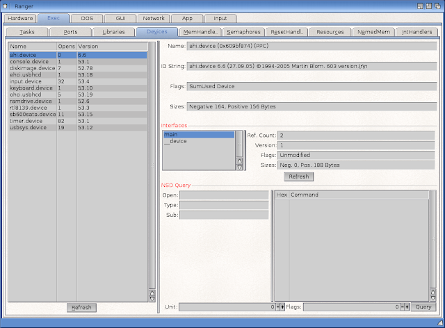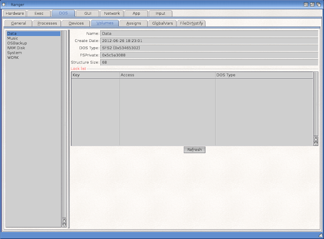 Under the Exec tab we can move onto the AmigaOS side of the Ranger information, below showing the current devices mounted: