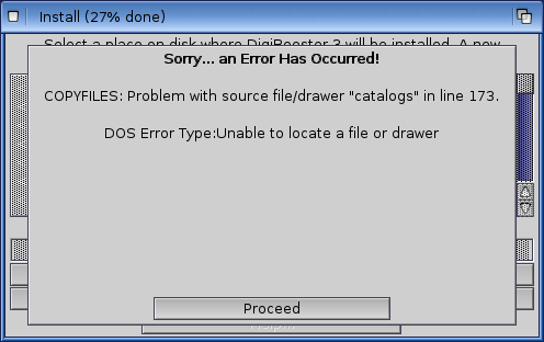 For software that costs as much as it does I am disappointed with this - the installer really should have been tested more thoroughly. Fortunately the installer does not appear necessary for it to work as there are not many files in the archive and it seems self-contained - I just manually copied the AmigaOS4 Digibooster3 subfolder structure to SYS:Utilities folder and run the program from there.