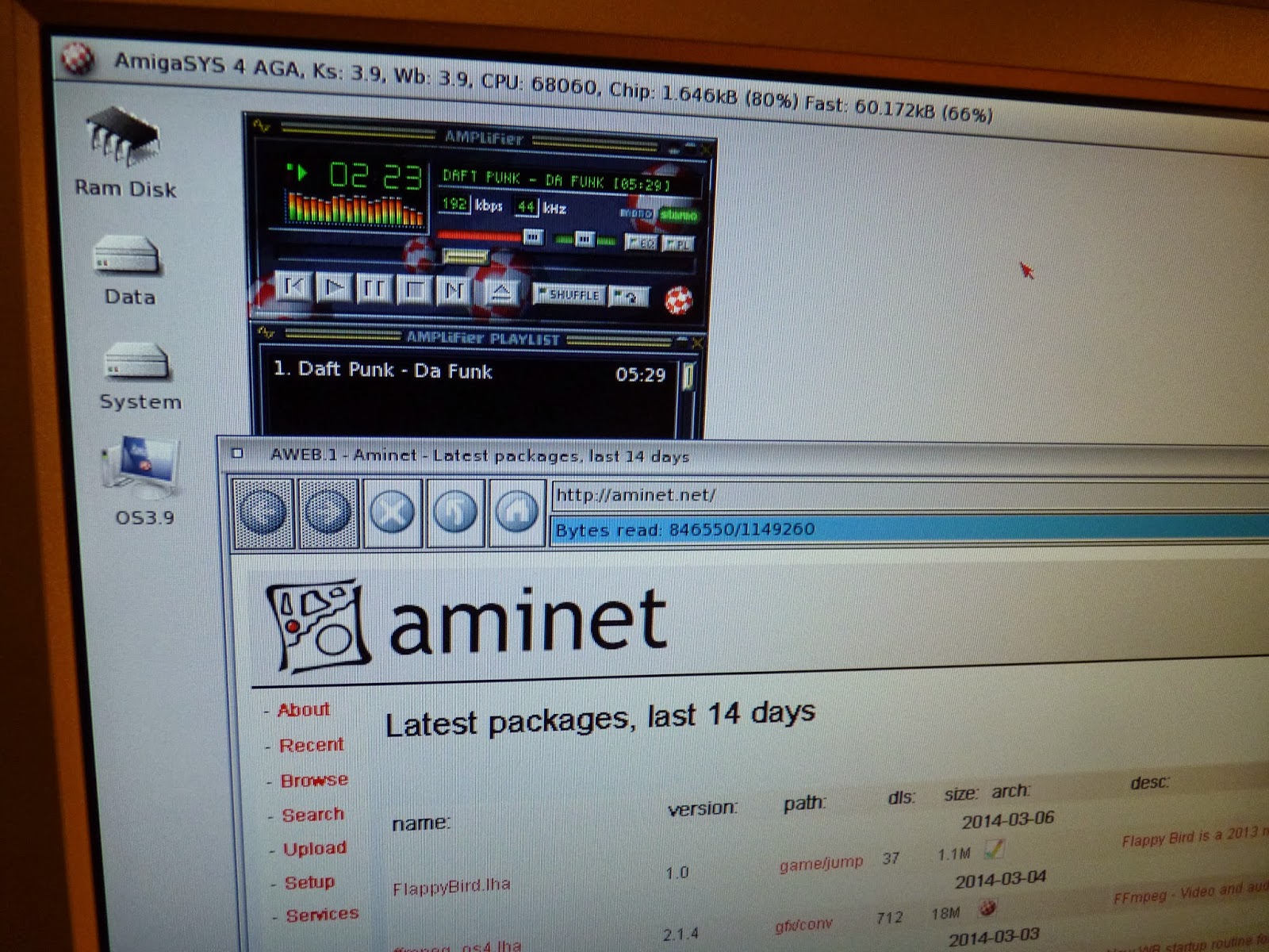 Little bit off topic of course but while I was here on the A4000T I checked Aminet using AWeb and found a port of Flappy Bird (famous on iPhone iOS) available for Classic Amiga today. I quickly downloaded it and had a go since I was here: