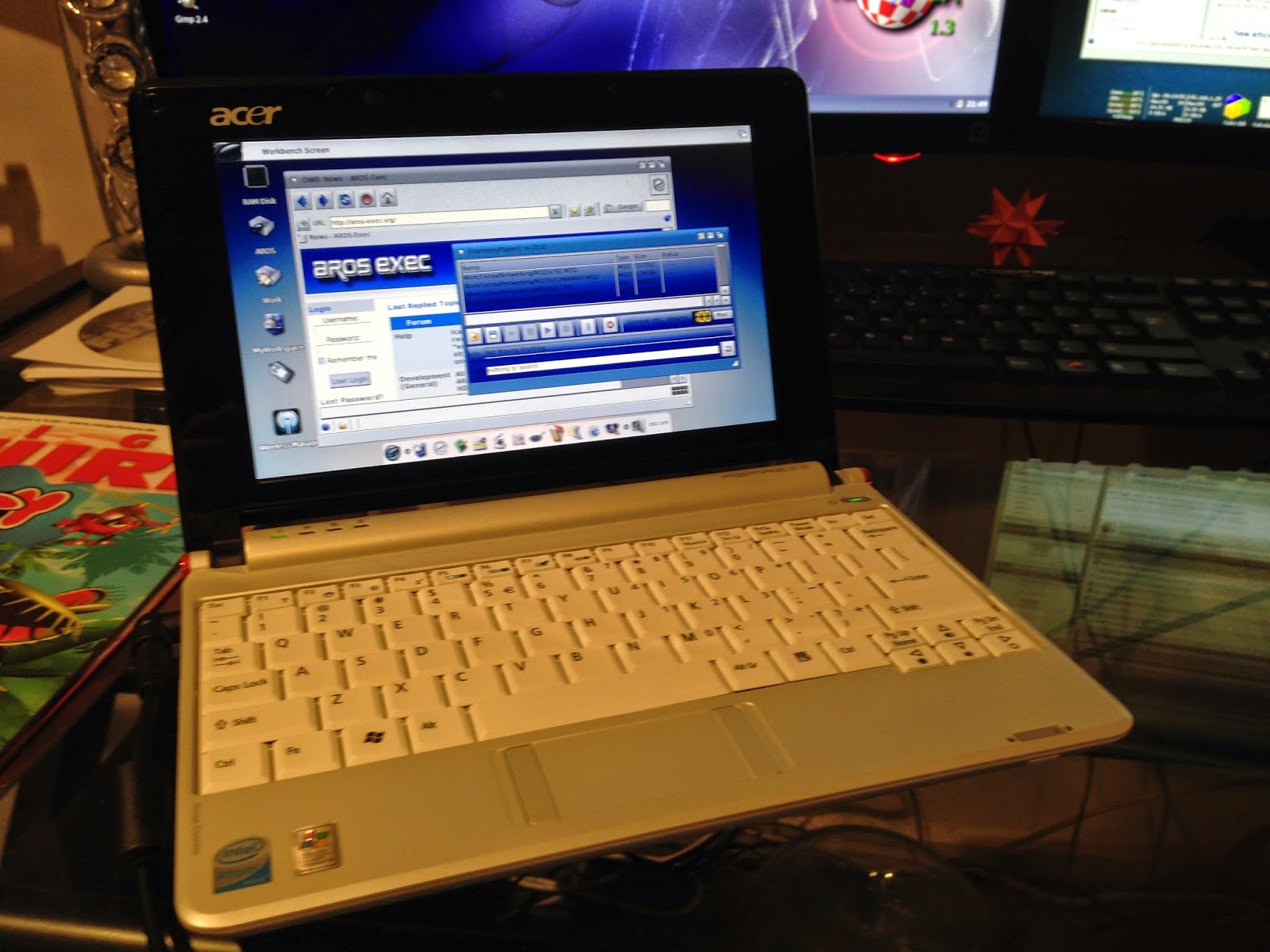 Like AmigaOS4 and MorphOS, AROS also has support for modern hardware standards, with wireless support in laptops now also a standard. Being able to use AROS "on the go" with such a small netbook is a very handy feature.