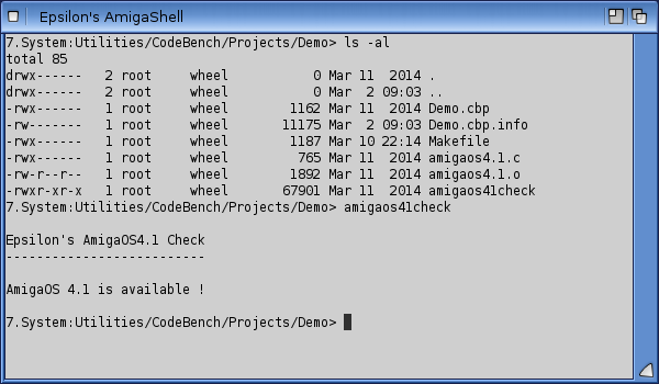 Once compiling successfully, you can also run the project from within Codebench, specifying if the program will run from Workbench or the Shell: