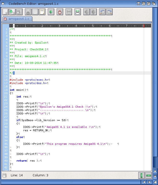 For my first program in Codebench, I used the Amiga Future magazine AmigaOS 4.1 C tutorial, which started each issue from Issue 104 for those interested in following it. Source code is included on the CD with the Magazine.