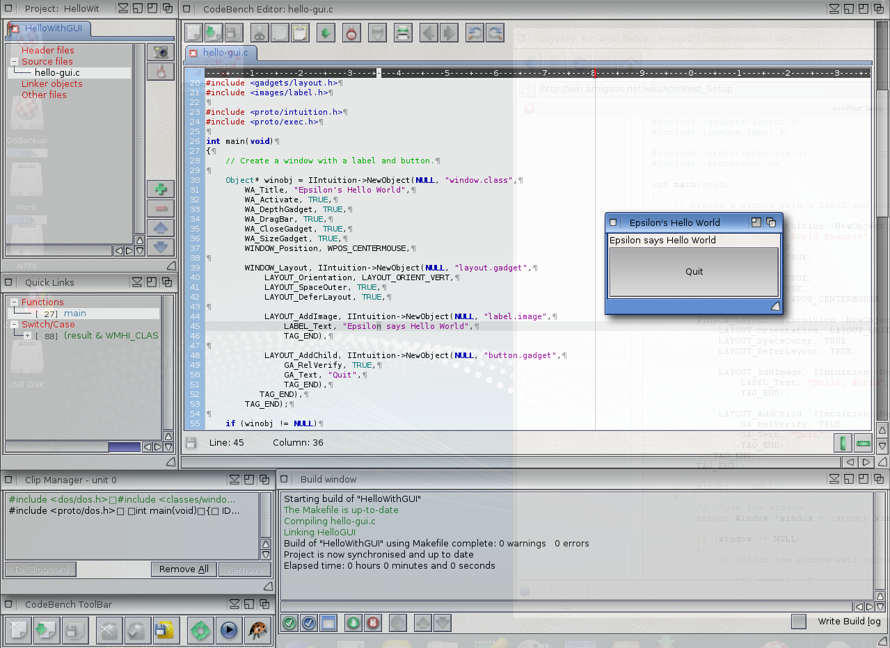 First up is Codebench, which exists in an AmigaOS4 SDK version and Hollywood version. This allows developers to use a modern IDE to manage projects, synchronise code with internet based respositories and more. Codebench can be downloaded from their website here, and it is currently free.