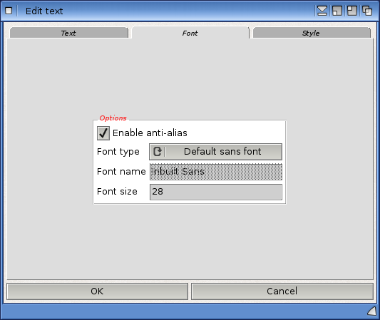 Turned on Anti-aliasing in the Font tab, and tell it to use the default sans font with a size of 28: