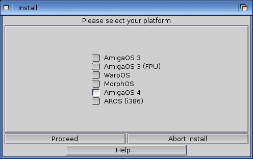 Again, make sure you choose AmigaOS 4 - it appears in different spots in each installer so check carefully as it is not selected by default: