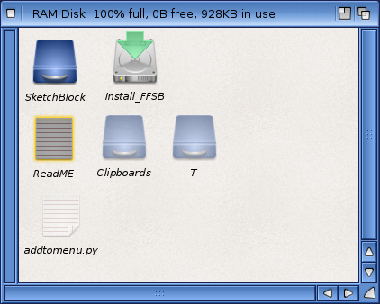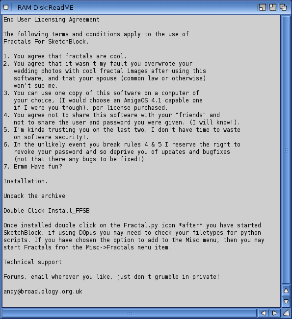 The final step is to install the Fractals for Sketchblock program - I extracted the archive downloaded (using the individual user id and password) to RAM: , which then gave me the following contents: