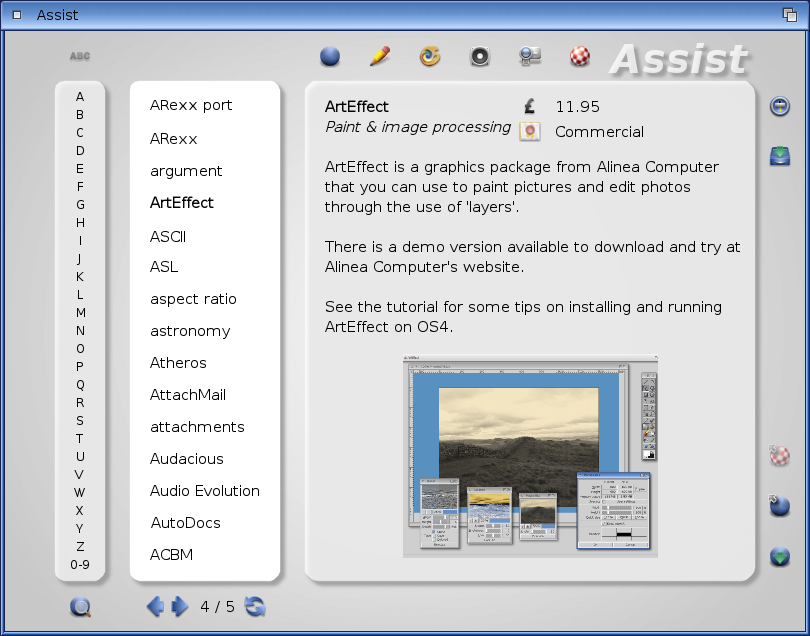 I've been working on Assist 2.0 for a while now and the latest version of the knowledge base is slowly coming together. Some fairly major changes have happened to how the program works which make browsing the A-Z faster. There is also a new layout that shows key information about programs above the article and after a long absence screenshots have returned to the A-Z. Regular users might also notice a few other cosmetic changes in the screenshot below.