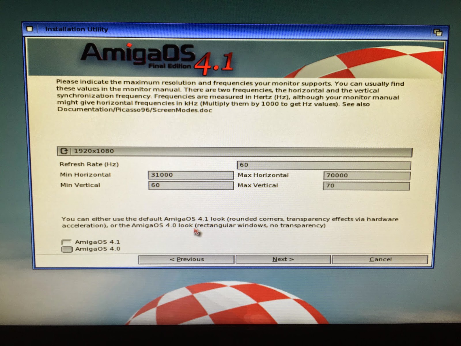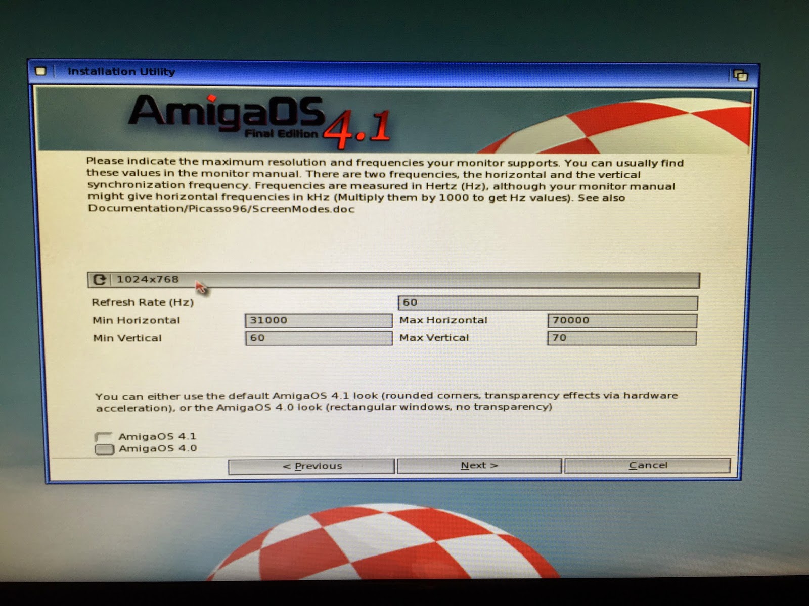 I selected 1920x1080 as my resolution as I use a 24" HD LCD Screen, and left the AmigaOS4.1 look option set - You do have the option to use the look and feel of AmigaOS4.0 if you prefer.
