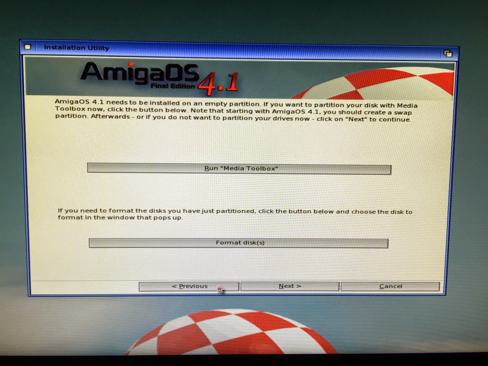 The installer then gives you the chance to open Media Toolbox to setup the SWAP partition and prepare your target partition and format for AmigaOS4.1 Final Edition (if not already done):