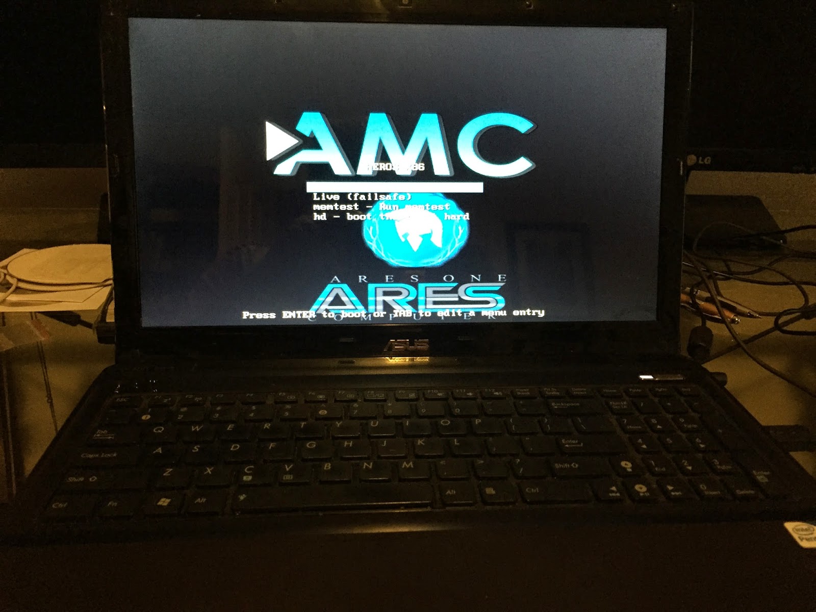 On reboot you get a reminder that AEROS is based on Linux (Debian), with the Grub boot menu showing Debian GNU/Linux boot option - shame you don't get the same AresOne Computer boot screen from the Live DVD: