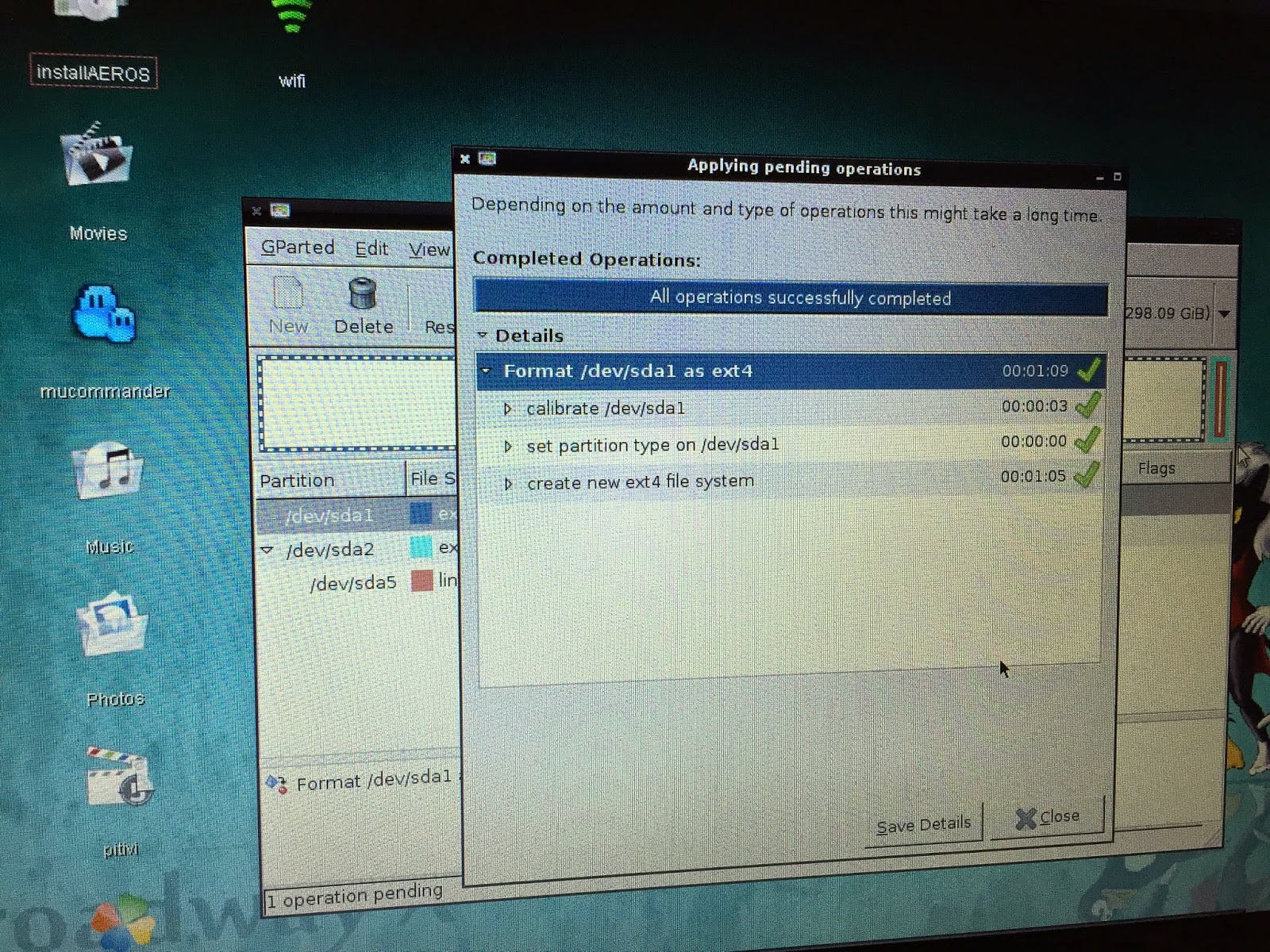 In any case, I reformatted the Install partition /dev/sda1 as ext4 format, as shown below: