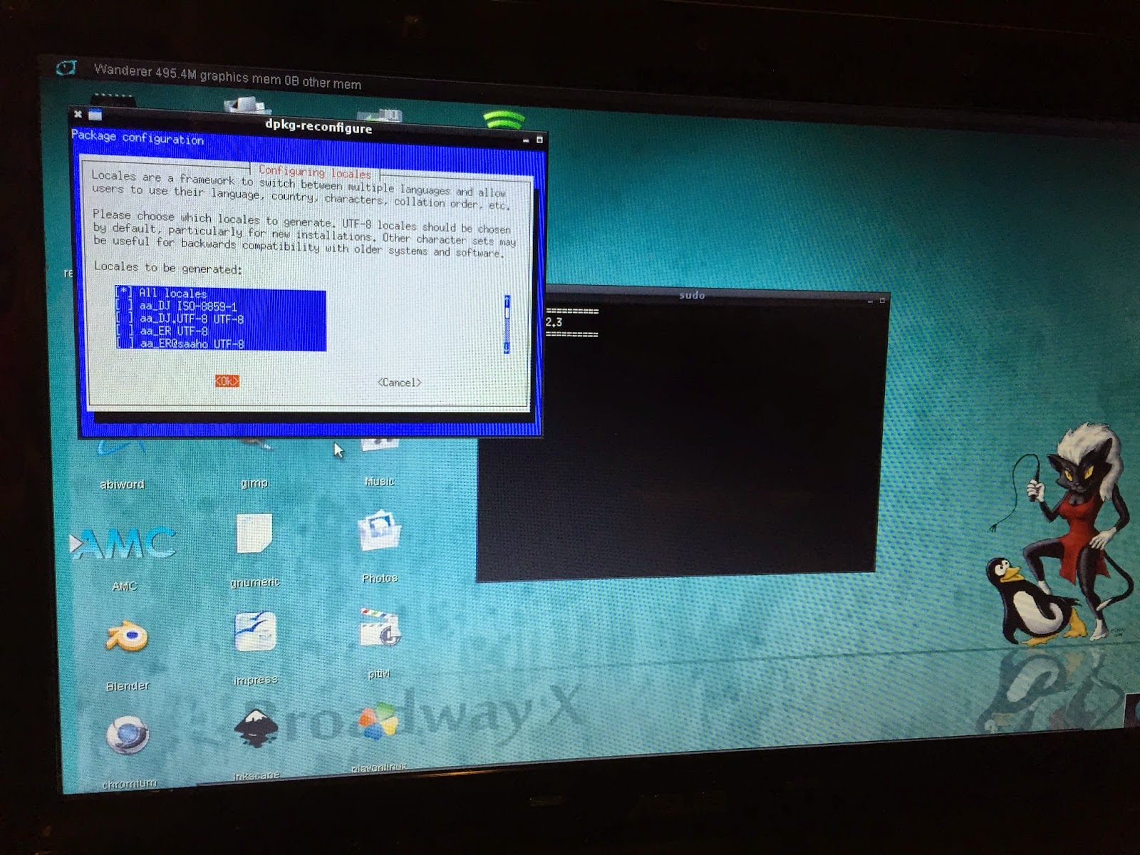 In a flashback to old school Red Hat Linux, I then get a terminal screen asking me to select which Locales to install...this part is not very user friendly, requiring arrow keys, space bar to select and tab key to navigate to the OK button to continue (no mouse input):