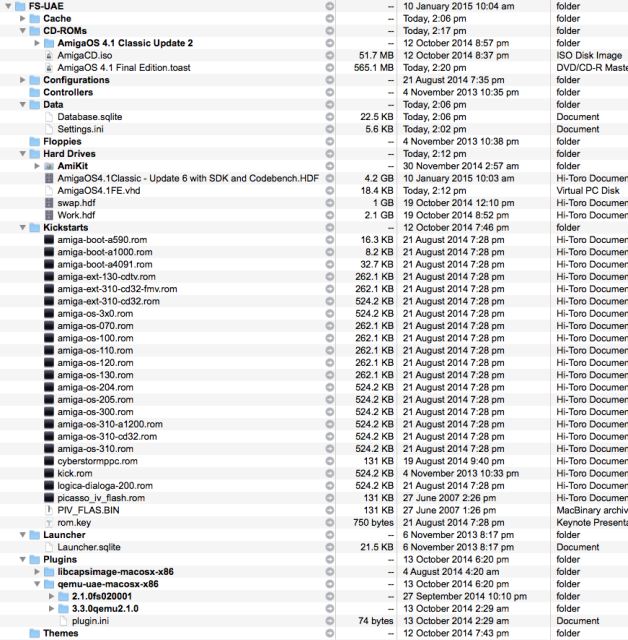 As a reference my Documents/FS-UAE folder structure looks like this (before I put the latest QEmu 3.6 into the Plugins folder):