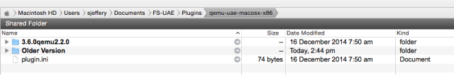 I then copy the latest QEmu PPC 3.6 plugin to the FS-UAE/Plugins folder, and archiving the old versions under a new sub-folder I called Older Version: