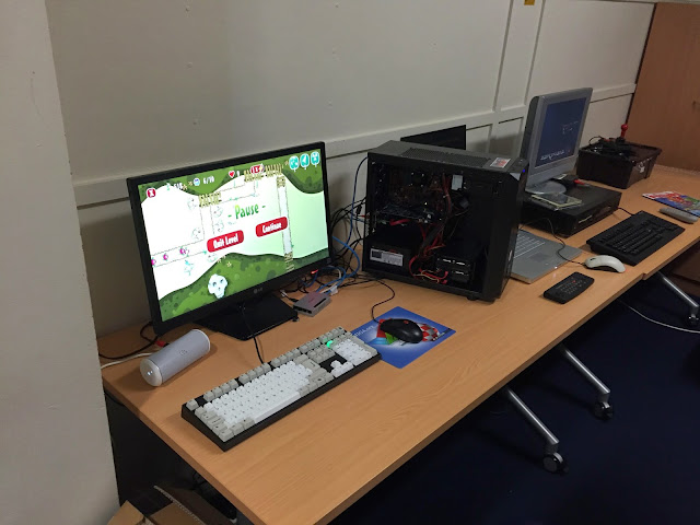 I was showing a demo of the recently released Swamp Defense 2 game on the Sam 460CR: