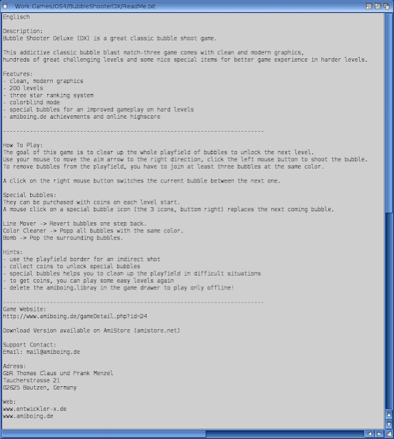 I am back from my holiday and turned on my Sam460CR system today to find out a new game called Bubble Shooter DX by Entwickler-X available on AMIStore!
