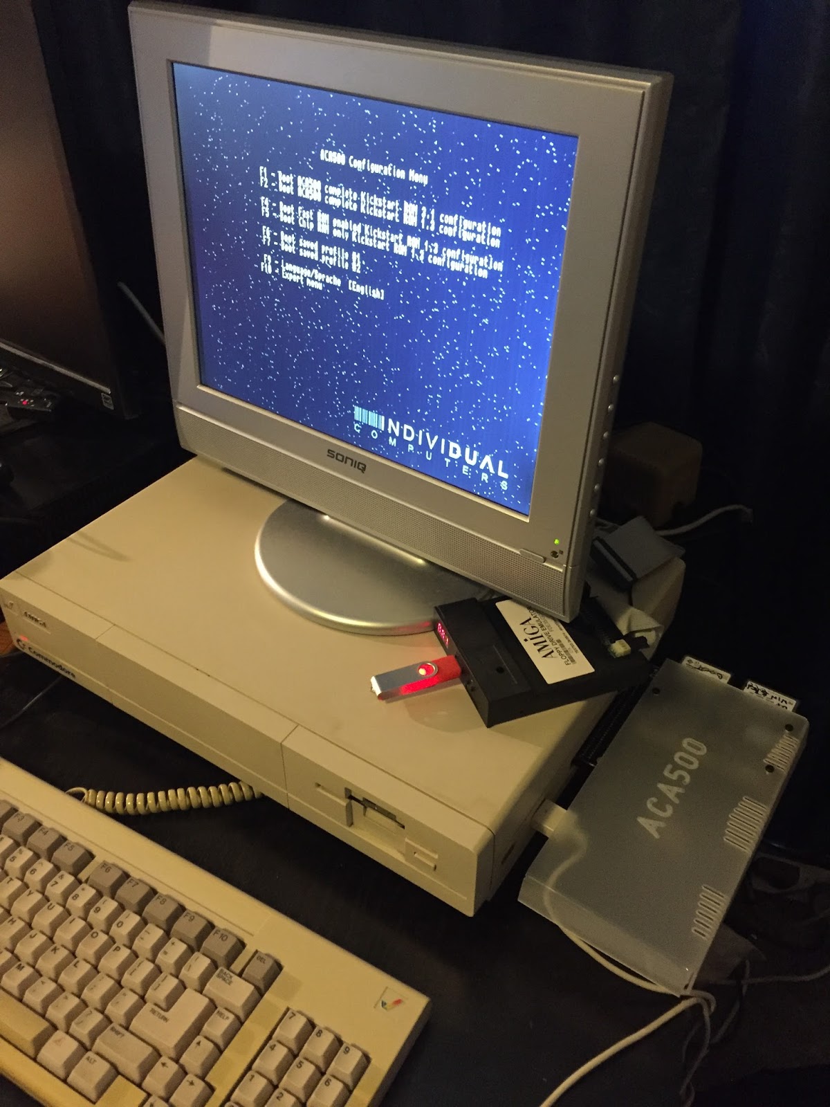 I powered on the Amiga 1000 and the ACA500 worked and presented the initial boot menu!