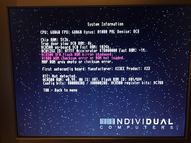Just to prove it does pick it up, here is the system information screen on the ACA500 showing the Apollo 060 accelerator detected.