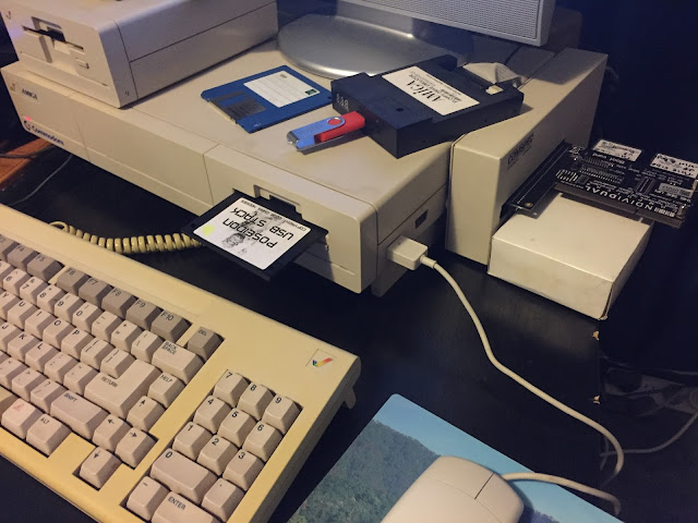 Being forever ambitious I also tried (and failed) to get the USB working on the Amiga 1000 via the clockport on the ACA500 - I loaded in the Poseidon drivers: