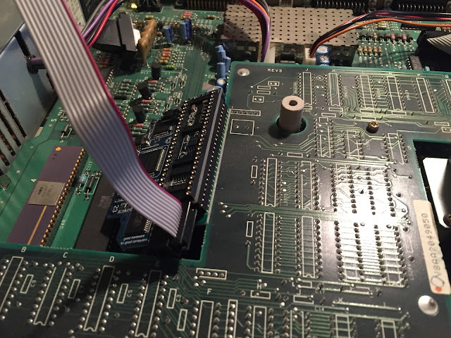 Here it is installed. I left the foam protecting the pins on the Amiga 1000 converter while doing this.
