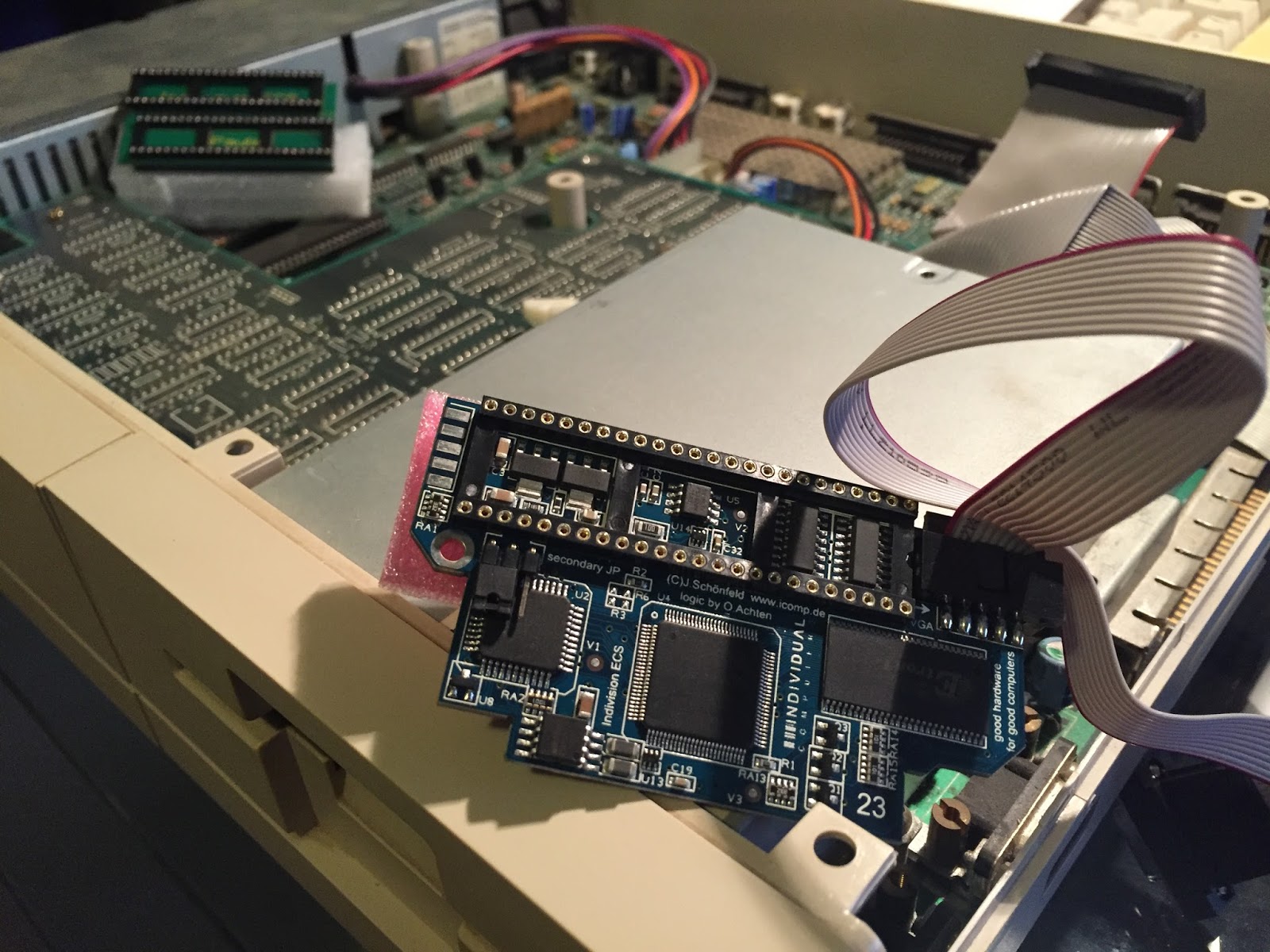 Turning my attention to the inside of the Amiga 1000 now, I needed to buy a special converter for the Amiga 1000 to allow it to use the Indivision ECS on the Amiga 1000.