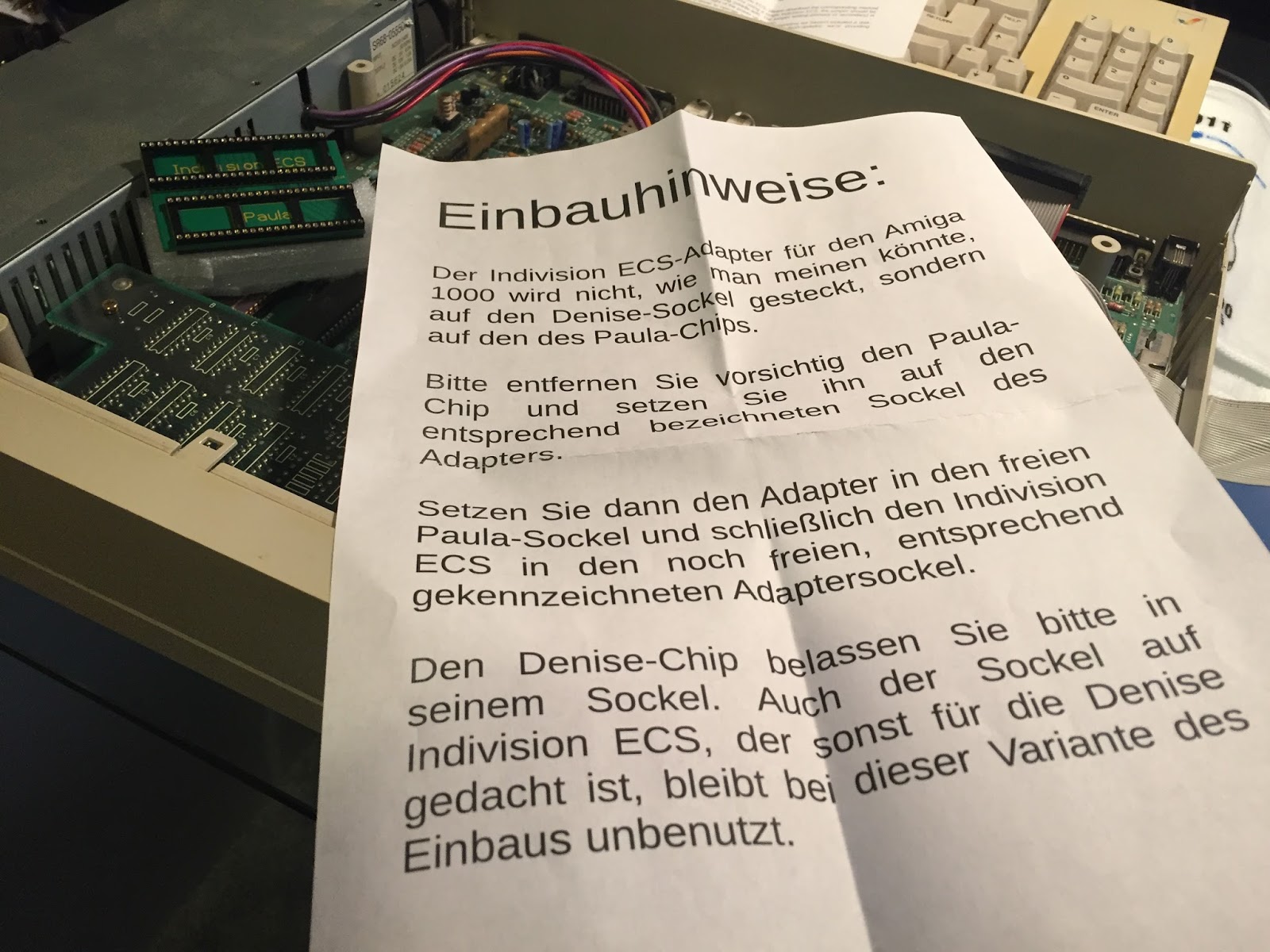 I then thought I could try installing the indivision without the converter, It seemed to me that it would fit without the converter, and just put the Paula chip in the socket on the Indivision itself.