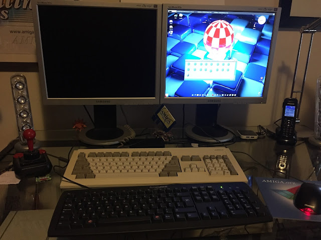 I added the DIN plug converter cable to the Sum adapter since I am connecting it to the Amiga 4000T. Here it is below with the old Amiga 4000T keyboard and the newer usb one!