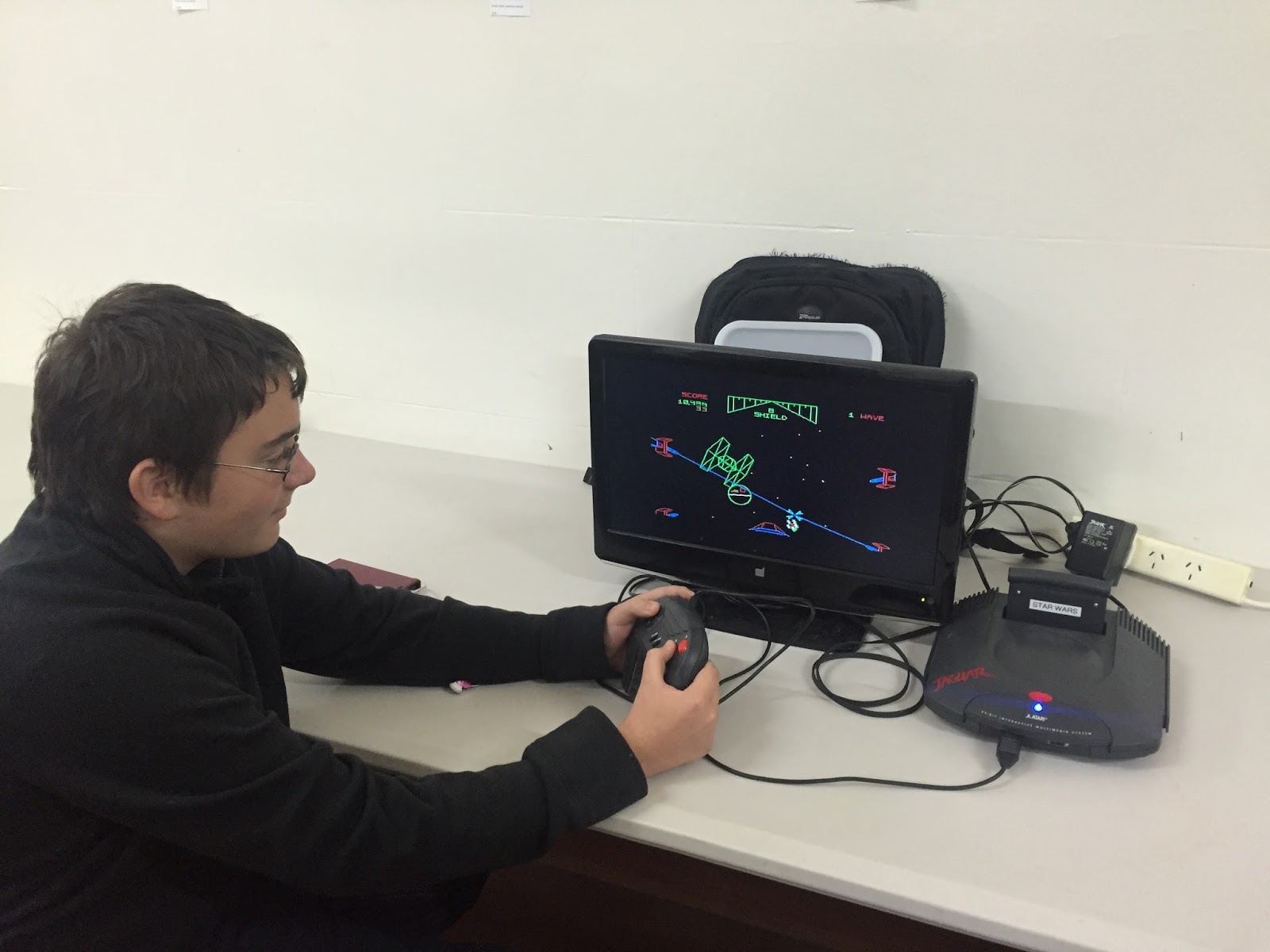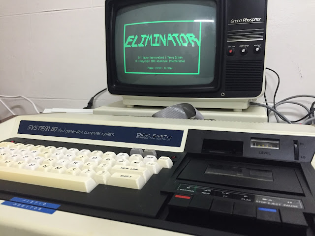 I had a go playing Eliminator on this system - mastering the strange cursor key layout on the keyboard was a challenge - better to let the owner show how it's done!