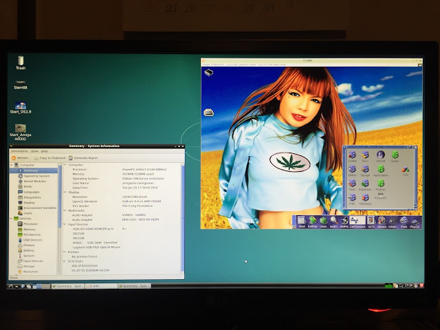 For everyone else who is not on Facebook, here is some screenshots from my AmigaOne A1222 of the latest Debian 9 sid build and 4.7.0RC2 kernel running JIT E-UAE with my Amiga 4000 AmigaOS 3.9 hard disk setup!