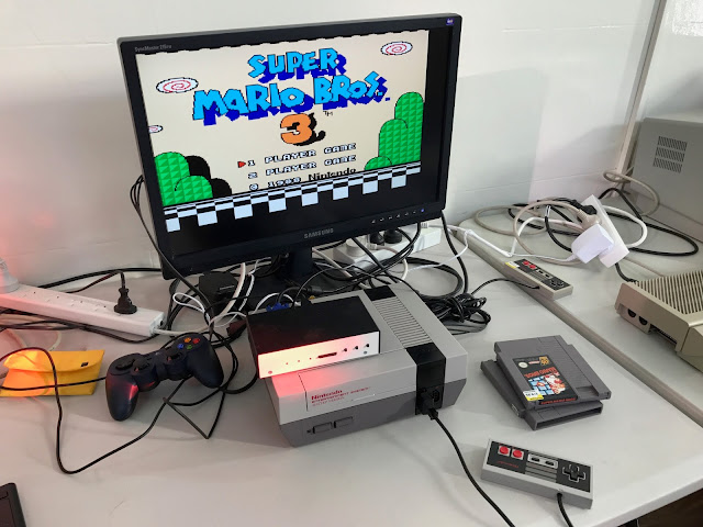 Next to this was a special built Raspberry Pi running emulation of Retro systems inside a Sega Master System II case, with SD Card and keyboard ESC mapping to the power button for games that needed it.