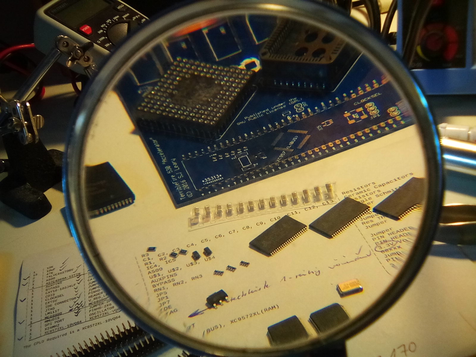Building the TerribleFire TF530 accelerator board, part 3: Parts inspection, and soldering