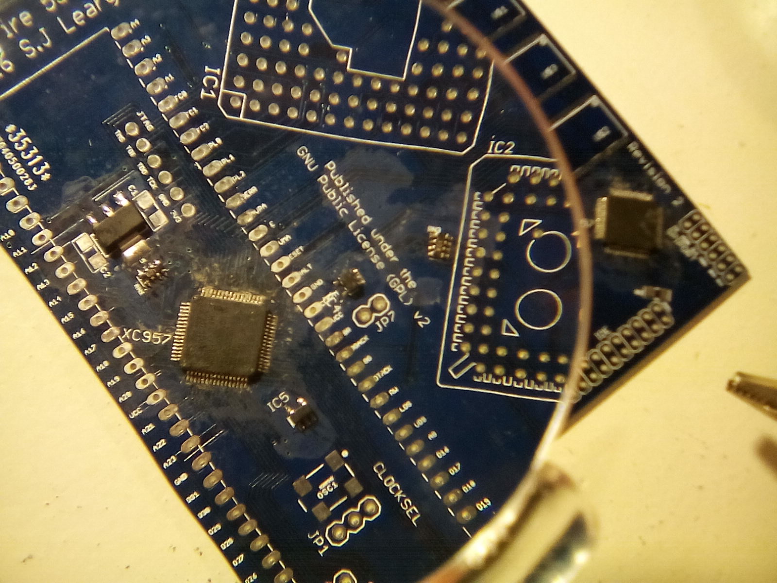 Working with tiny SMD components poses some unexpected problems. For example if you're used to soldering hole-though parts you will most likely use way too much solder on your first attempts. Well, I did. Then, when you got used to using really very little solder, you find out that you cannot easily suck away the solder if you've made a mistake, because the amount of solder is too little for the desoldering pump to work on. Then you may learn the painful way that tiny PCB chip pins are reeaaally weak, you have to treat them really gently. And finally, when checking results of your soldering, you may find out that your grandma's magnifying glass does what it's supposed to do - to magnify - but it's scratched or unclear, and really creates more confusion than it does help.