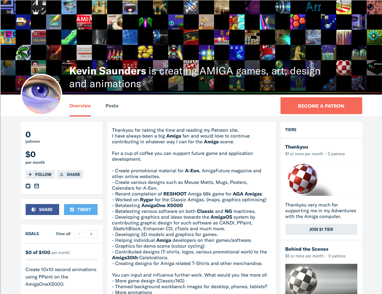 For sometime (at least a year) I have thought about creating a Patreon site and have now decided to do a soft launch. If you can't support my Patreon please consider promoting it somewhere online (eg Facebook, twitter, Amiga forums).