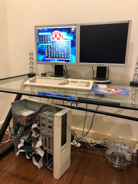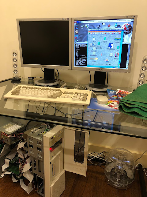 I covered my Amiga 4000T in some detail in this blog previously here so you can get up to speed with the specs of it - there is a lot of upgrades installed for this machine, including 68060 accelerator, Mediator PCI board, Voodoo3 RTG graphics card, Deneb USB and plenty more!