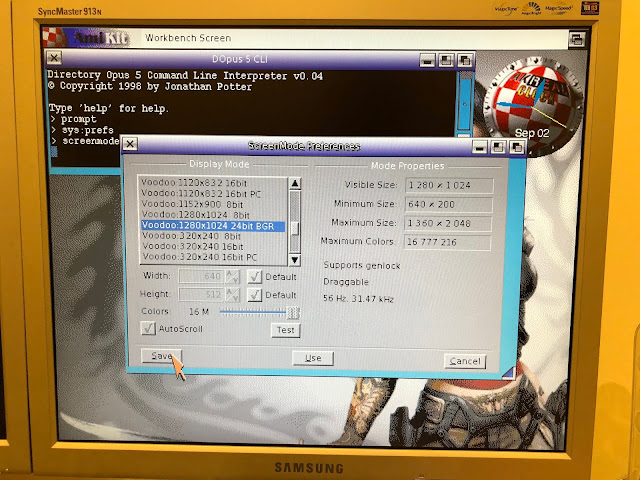 I could then set the Voodoo3 screen mode at 1280x1024 in 24bit colour and after a reboot I got all my chip memory back and a beautiful RTG display: