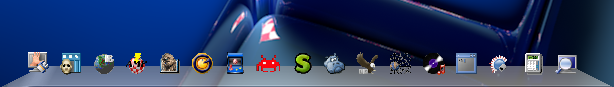The fancy mac-like WB dock at the bottom of the Workbench screen has floating icons that move up when you mouse over them - the dock on the left is AmiDock: