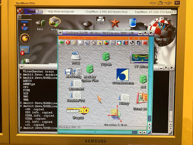 First up I need to install the Mediator PCI drivers so I can use the SoundBlaster128 PCI sound card, Voodoo3 PCI graphics card and the PCI network card on my Amiga 4000T - I used the Mediator CD to install that, as I copied the CD0 definition file from my A4000T backup on the A4000D to mount the A4000T's CDROM drive: