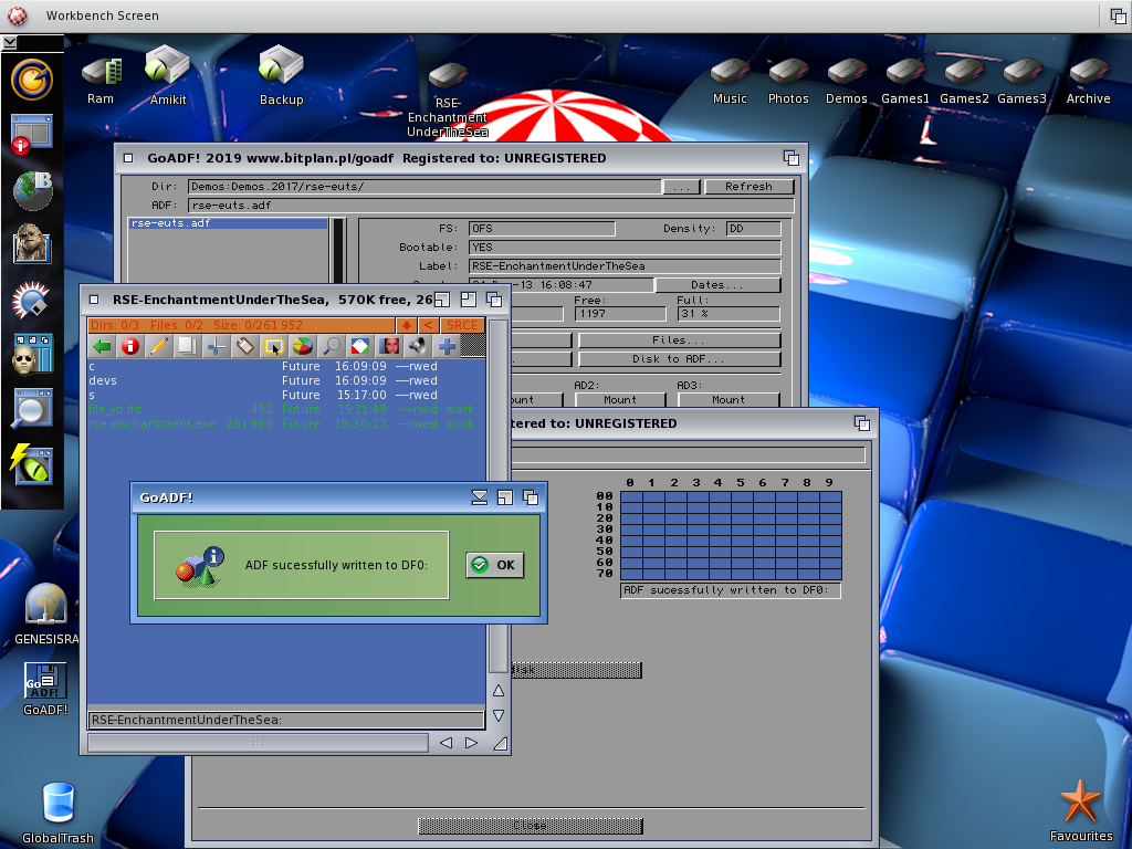 I then tested writing an ADF file to a real floppy disk on my Amiga4000T using GoADF.