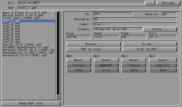 Basically the attraction to this software for me is a all-in-one ADF management solution. I copied the extracted drawer to my hard disk on my Amiga 500 initially, ready to try out.